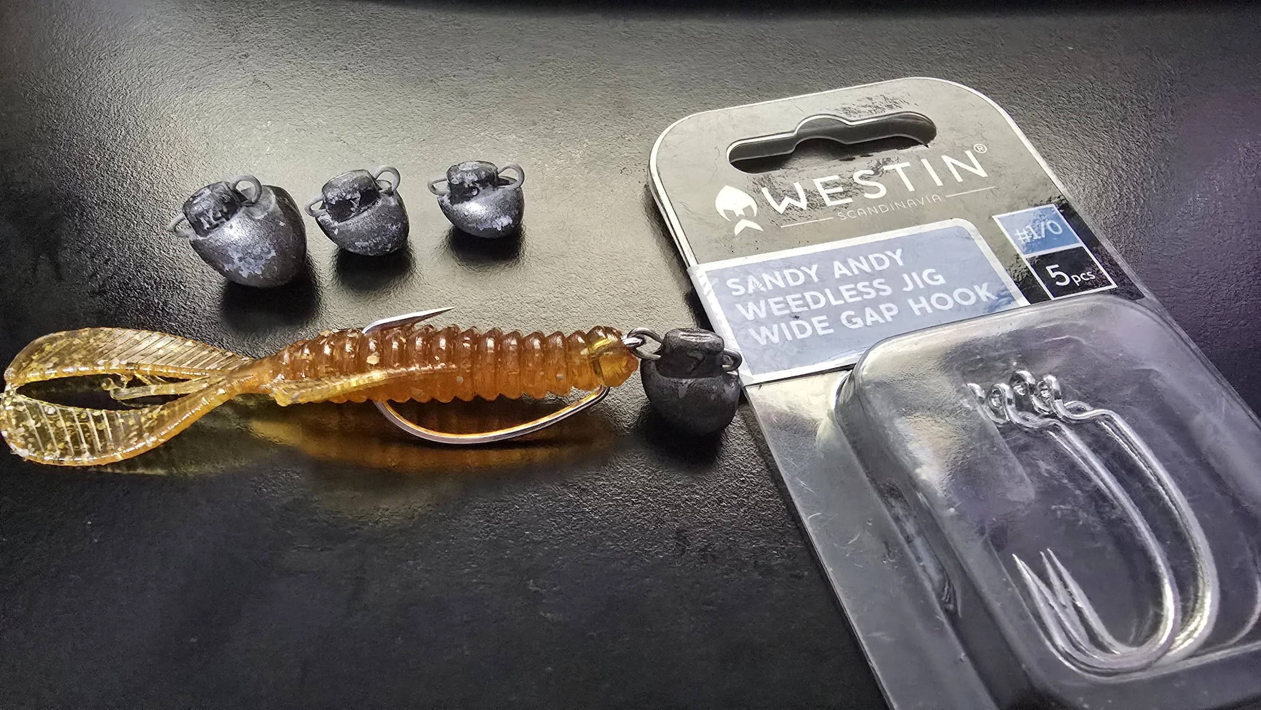 A firm favourite of mine is the Pirate Lures Kracken. I like to rig it on a 1/0 wide-gape hook with a cheb weight. The cheb setup lets the Kracken sit upright on the bottom, its claws flicking and moving naturally with the current. It also gives me the flexibility to swap weights quickly to suit the depth or tide — something you can’t do with a fixed jig head.
